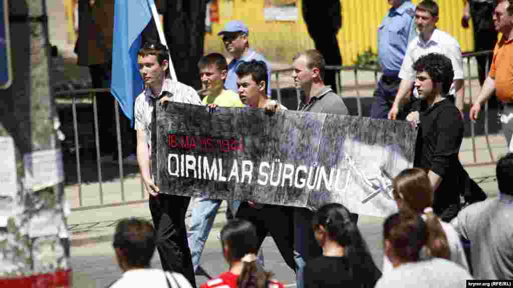 На ежегодных митингах в Симферополе люди возлагали цветы к монументам, участвовали в коллективных молитвах и проводили шествия.