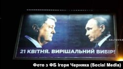 «21 апреля. Решающий выбор» ‒ плакаты с такой надписью, а также изображениями кандидата в президенты Украины Петра Порошенко напротив президента России Владимира Путина начали появляться на украинских улицах менее чем за две недели до второго тура выборов и вызвали настоящий скандал.