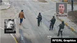 На кадрах с камер при этом видно, как сержант Борзунов обыскивает убитого Рубайло. Это происходит 4 марта 2022 года на улице Яблонской: