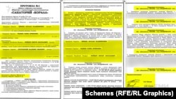 Журналисты «Схем» получили протокол собрания от ноября 2014 года, на котором принималось решение о регистрации российского ООО «Санаторий «Коралл» в Крыму в «связи с приведением в соответствие с законодательством Российской Федерации». На нем есть подпись и Натальи Щекиной, и Фаины Тедеевой. Виктор Крейдич, как отмечено, отсутствовал.