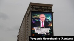 По некоторым из обещанных экранов с "большим братом" в итоге транслировали рекламу, но и зданий, где появился Путин, вполне хватило, чтобы создать в городе атмосферу антиутопии.