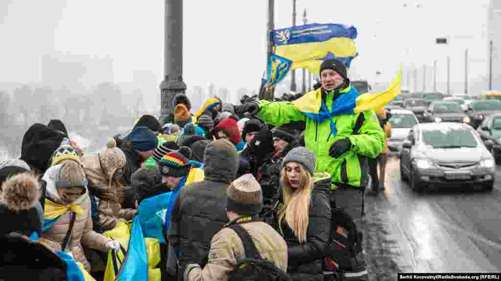 После того как все собрались, обе группы начали движение по мосту Патона