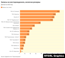 Первое, «Хорасан-U», ведет добычу на месторождении Северный Хорасан. В этой компании «Казатомпрому» принадлежит половина акций (является ли эта доля совокупной, компания не уточняет), «Ураниум Уан Груп» — 30%. Пятой частью владеет Energy Asia Holdings Ltd, зарегистрированная на Британских Виргинских островах. В ответе Азаттыку «Казатомпром» заявлял, что владеет в ней 50%-й долей. По его данным, остальная часть принадлежит японским инвесторам.